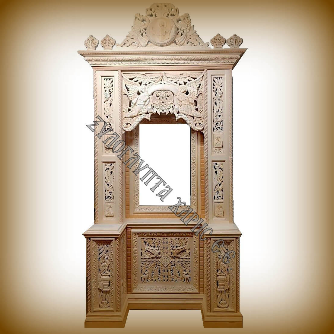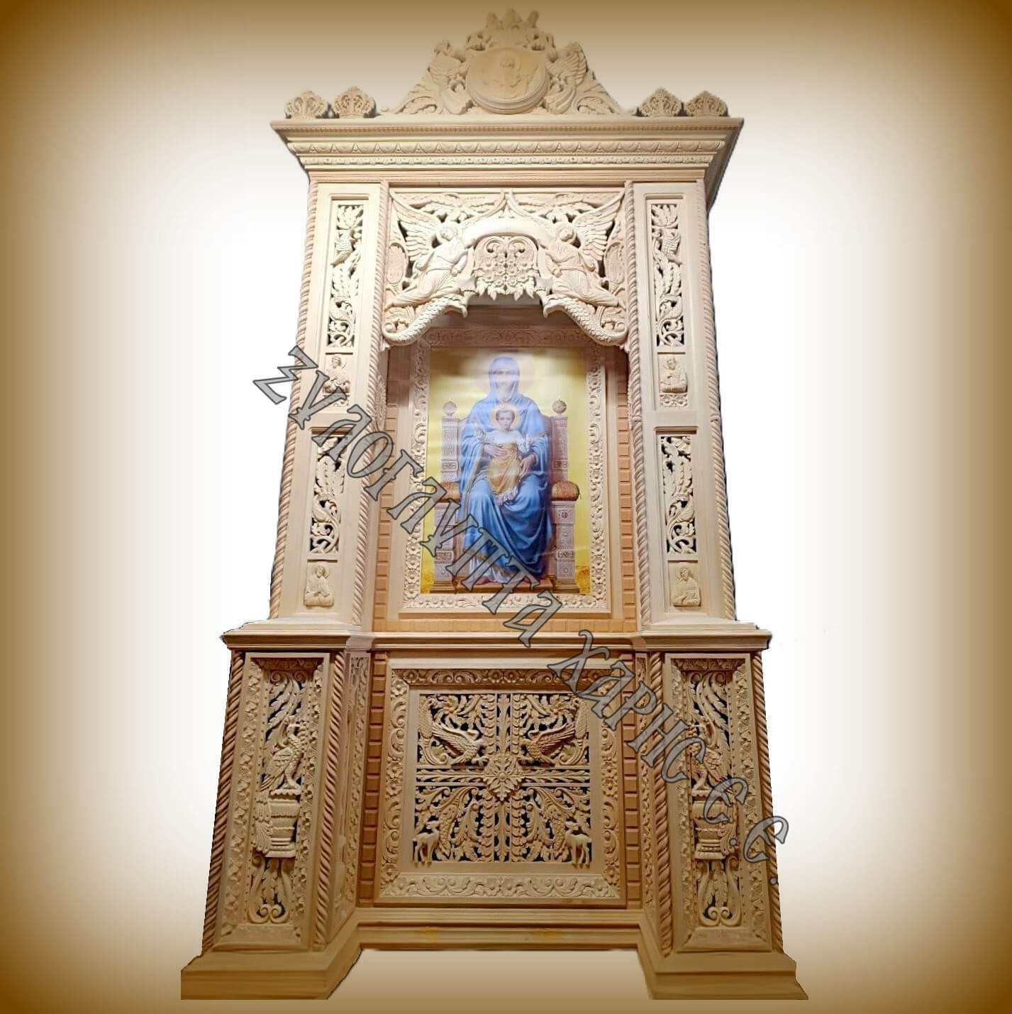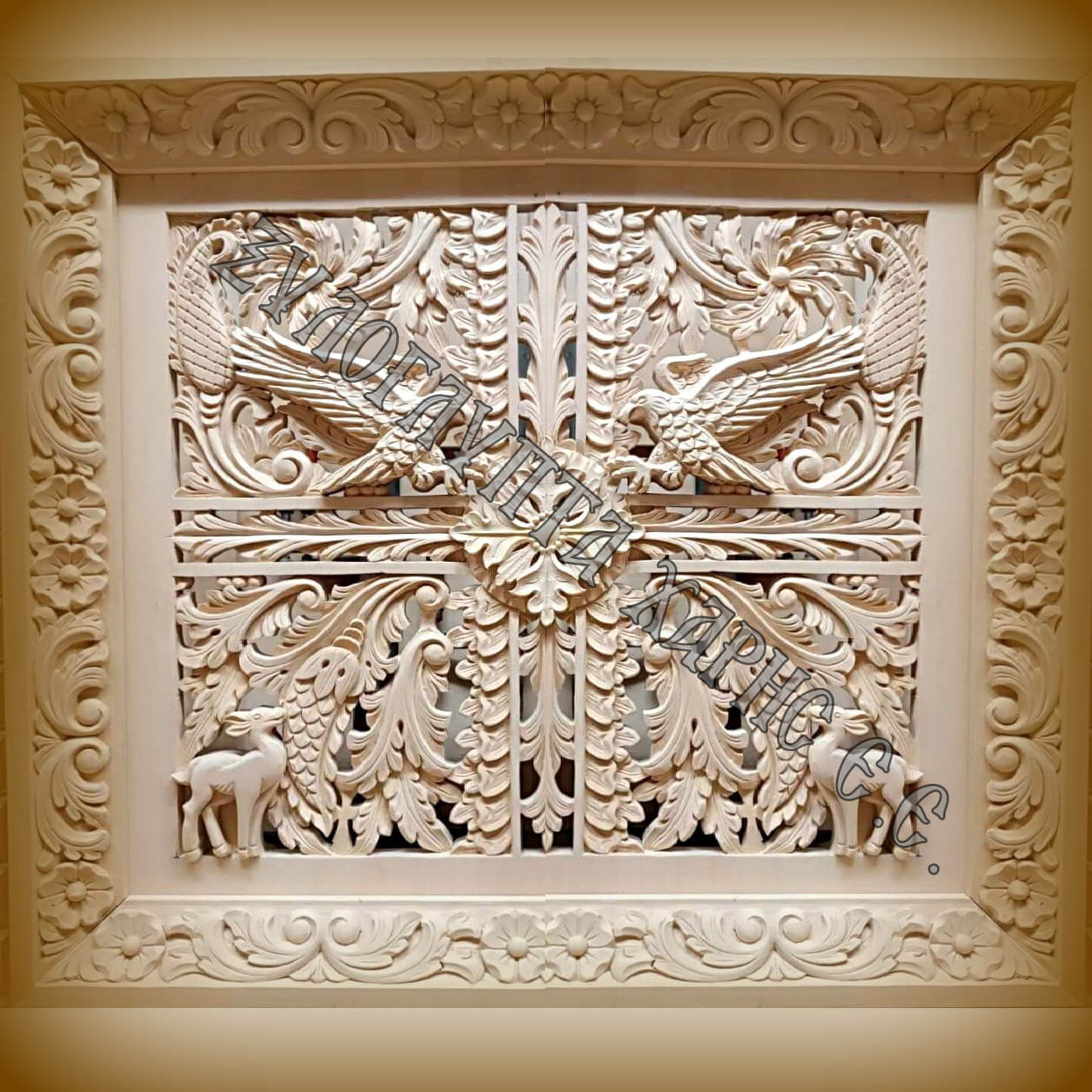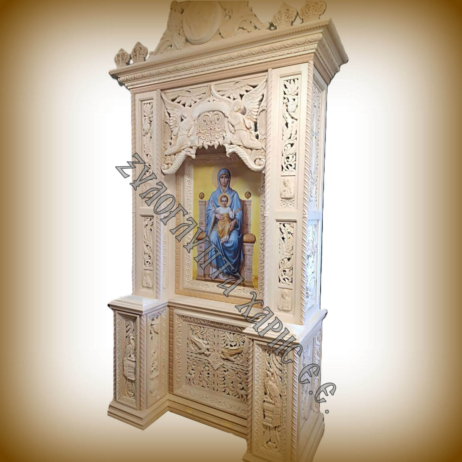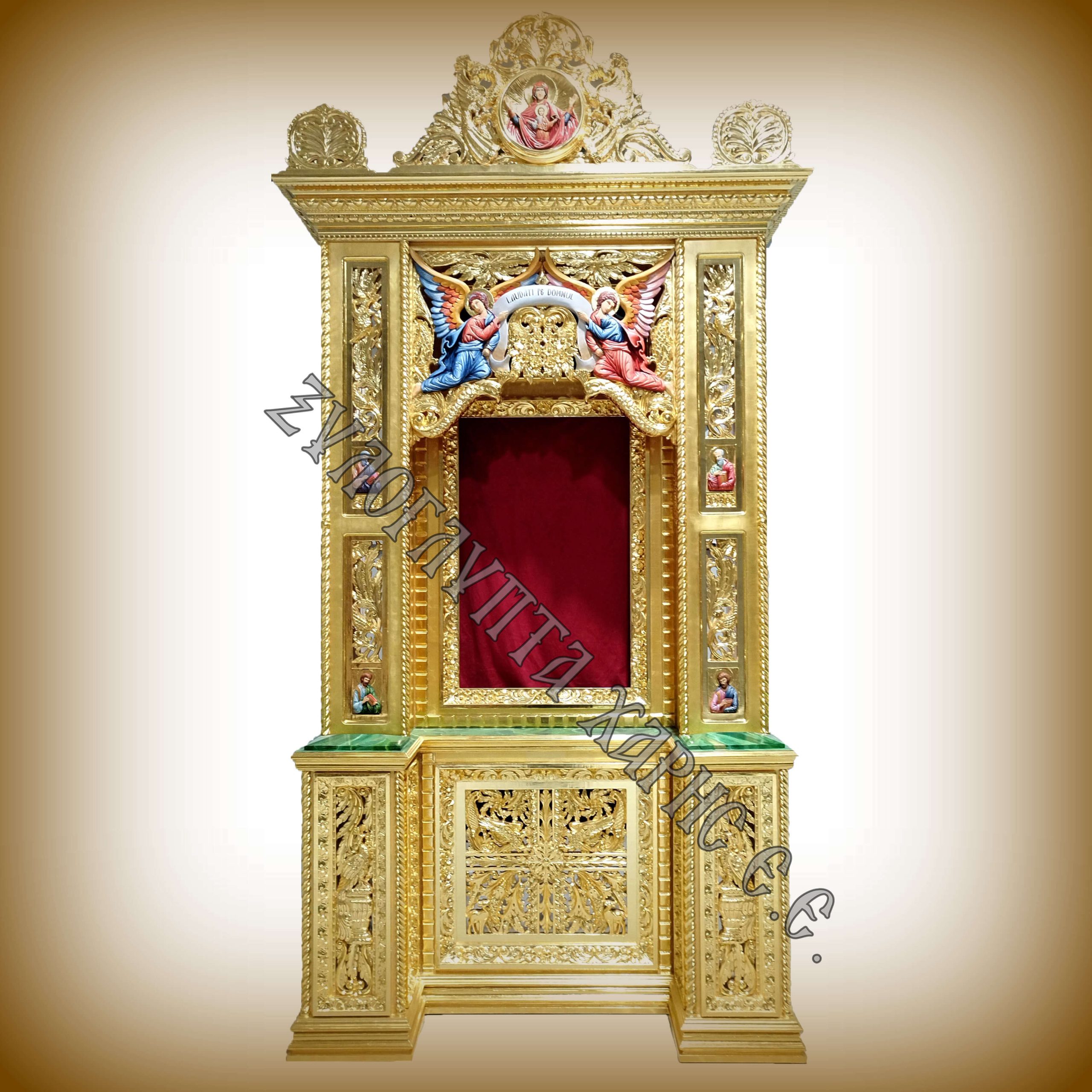 Ξυλόγλυπτο μοναδικό έργο, που η κατασκευή του έχει γίνει με το μεράκι ,τα χρόνια εμπειρίας, την αγάπη για την τέχνη της ξυλογλυπτικής , και την πίστη στην παράδοση της Ορθοδόξου Εκκλησίας μας.